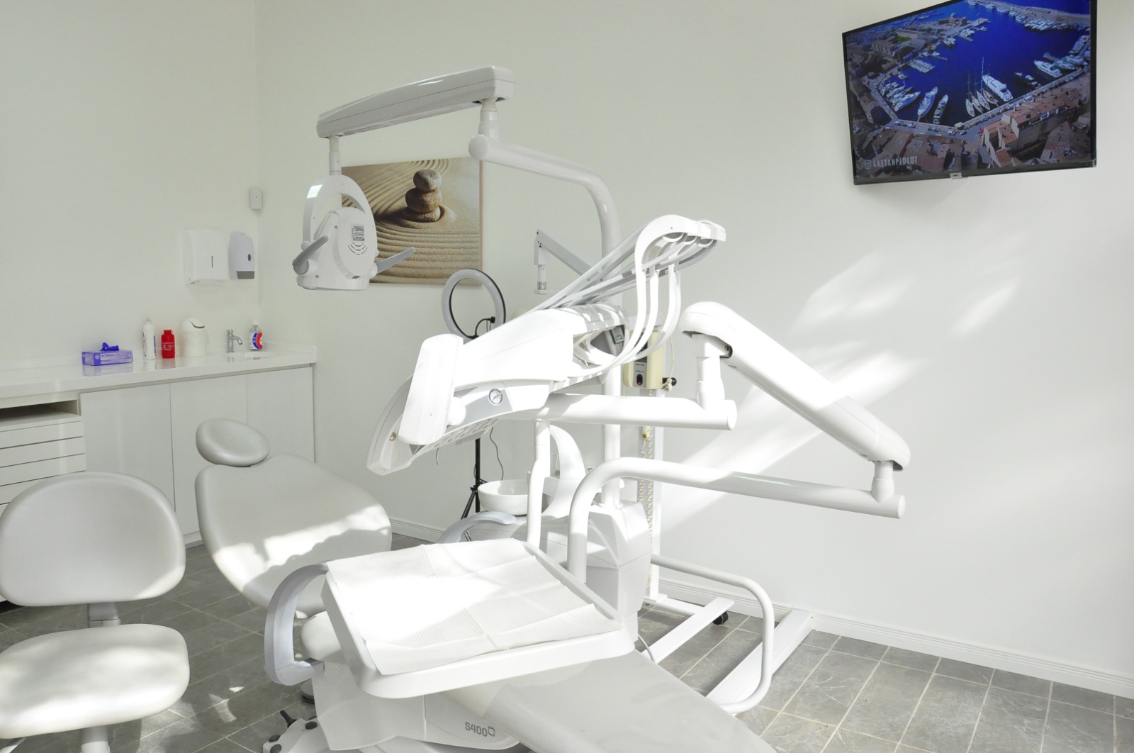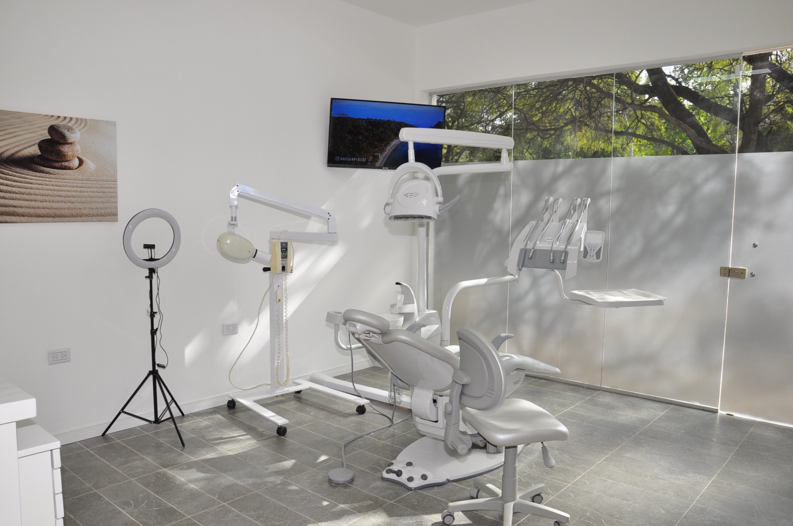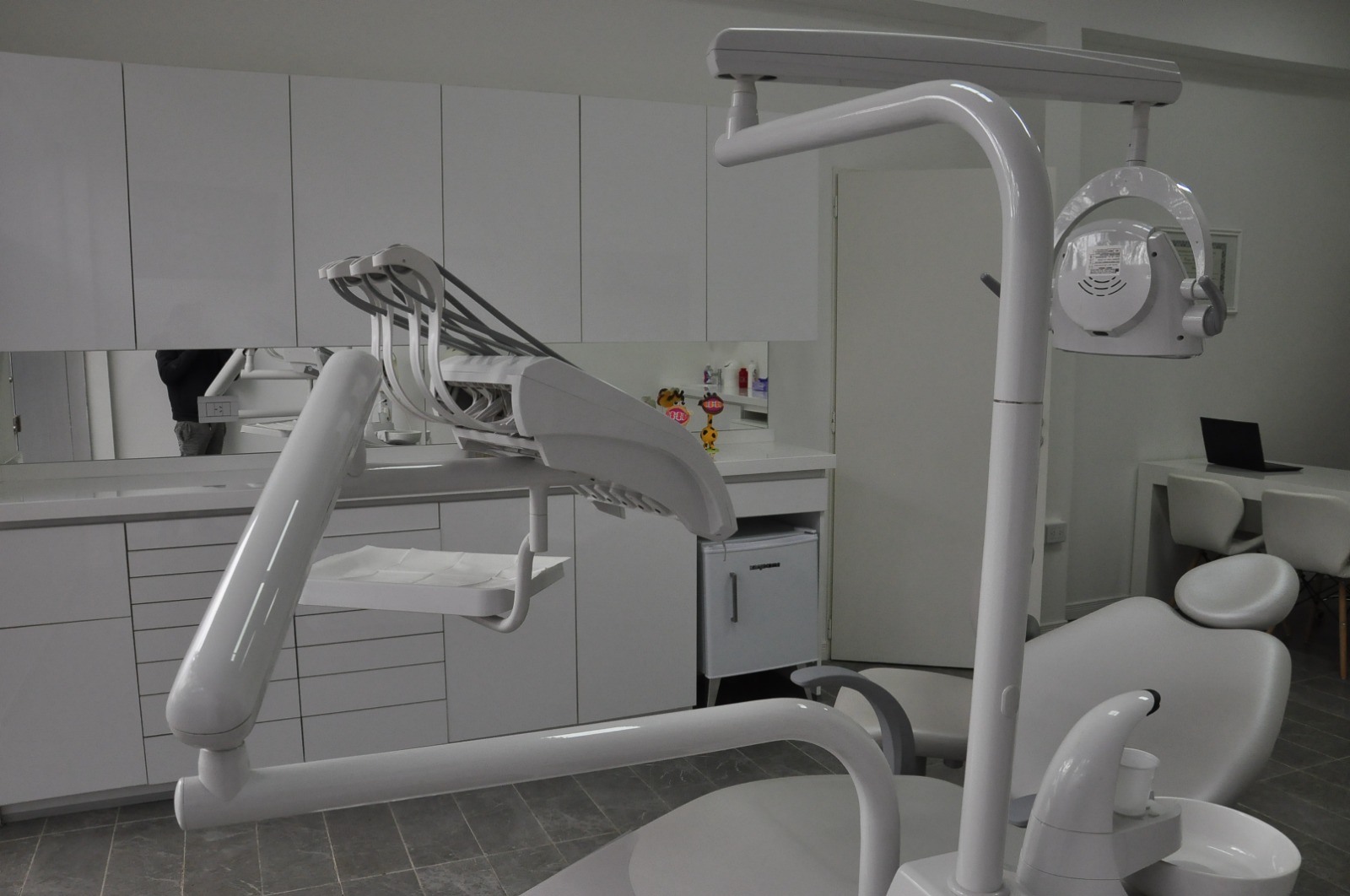 Moderno sillon con buena iluminacion y los mejores instrumentales y materiales para realizar tus tratamientos