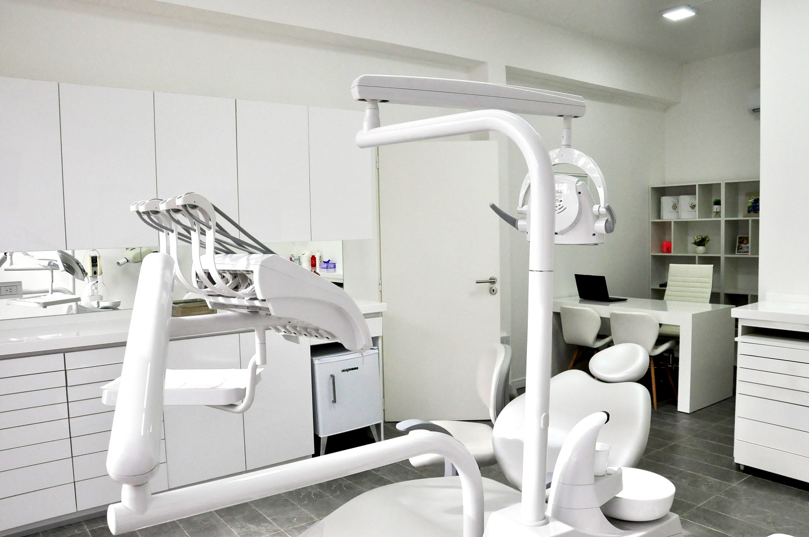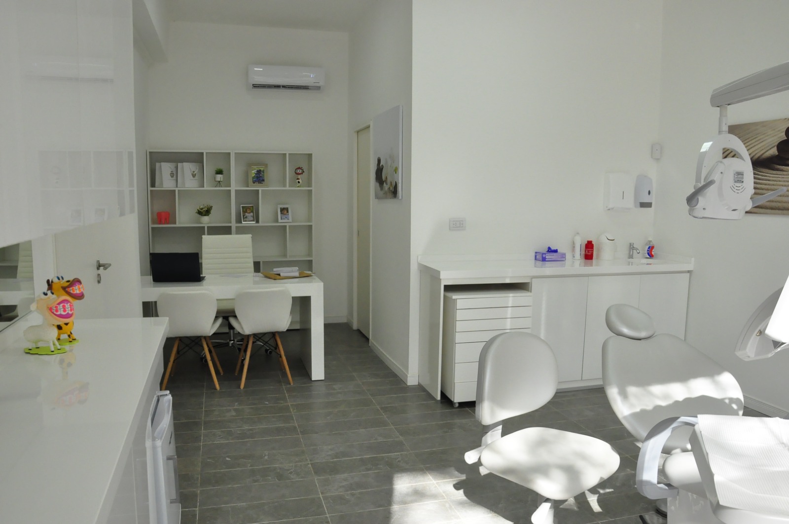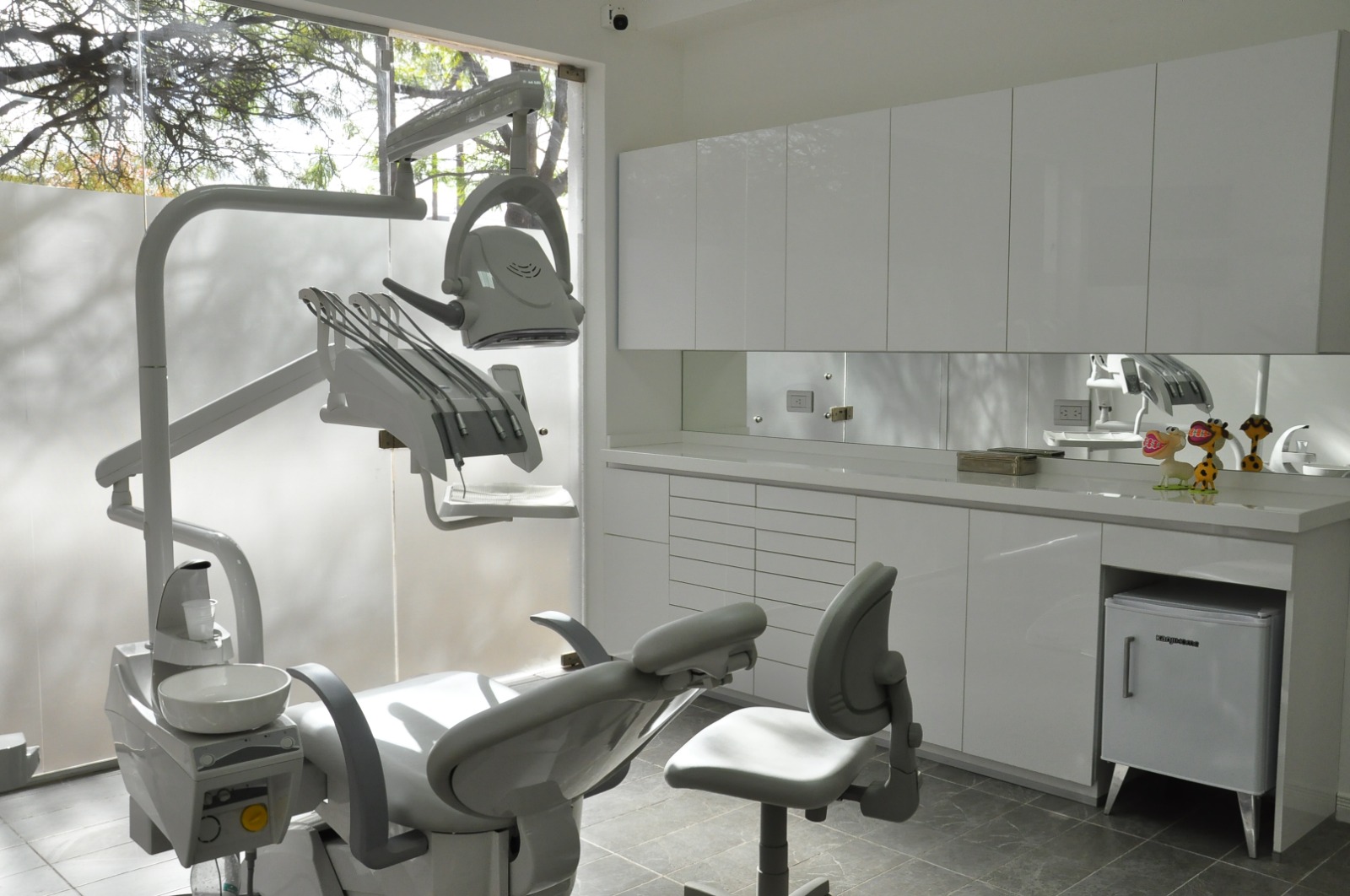 Consultorio amplio con un comodo y moderno sillon para que estes comodo durante tu tratamiento